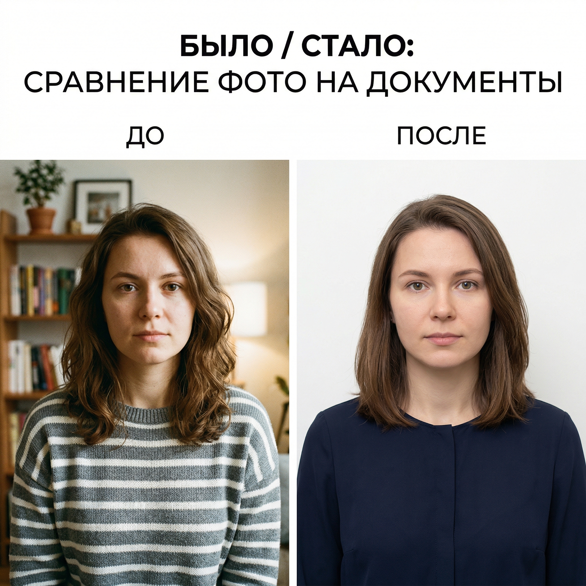 Для паспорта РФ, загранпаспорта и виз автоматики недостаточно. Наш ретушер вручную выровняет плечи, уберет тени и подготовит фото строго по ГОСТу.